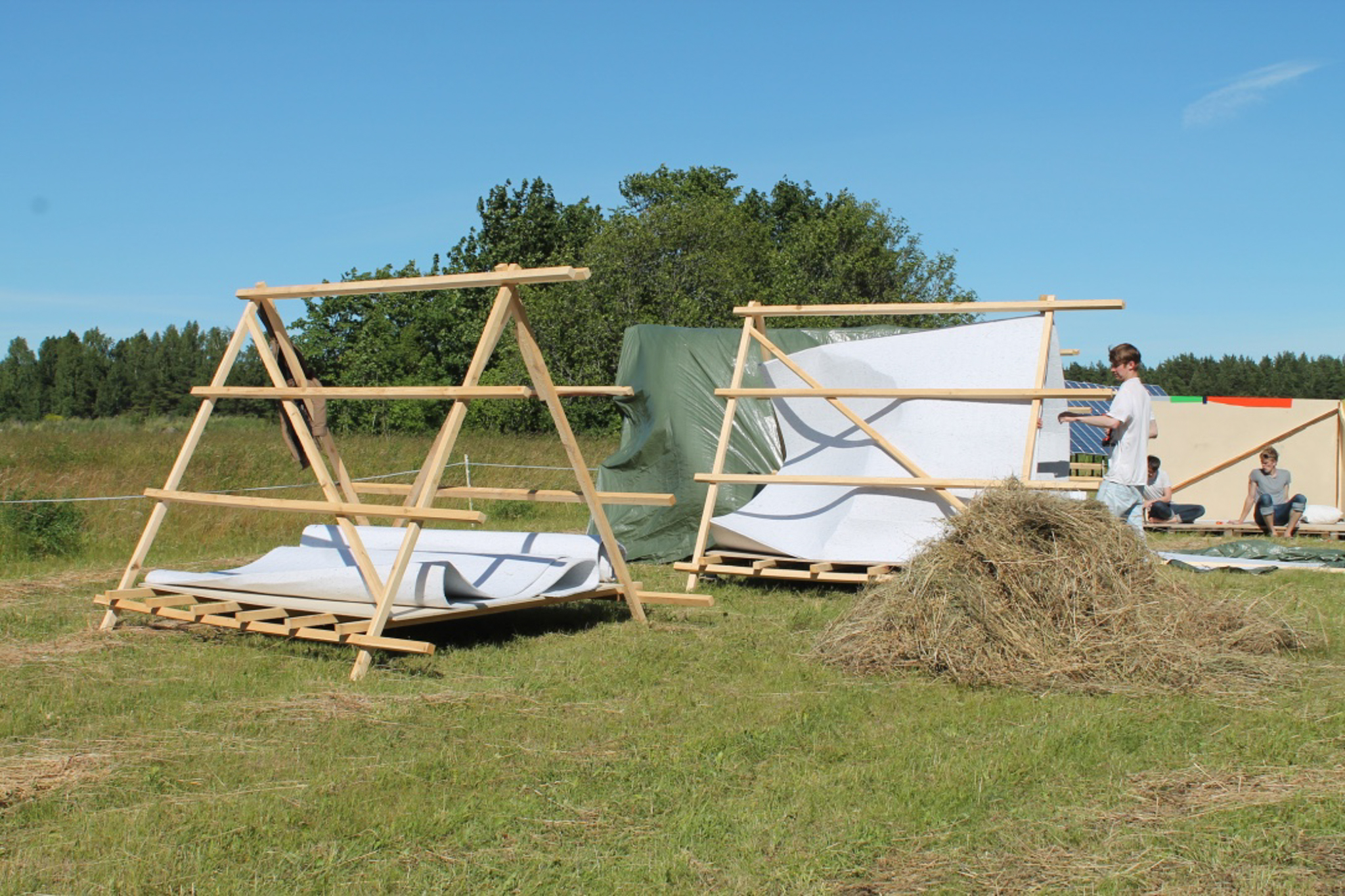 The Rõuk project, a collaborative design for the Juu Jääb Music Festival 2015, seamlessly integrated into its natural surroundings. Inspired by traditional hay drying frames, it featured a wooden framework with felt sleeping capsules, all crowned with a thatched roof. This innovative portable hotel concept was the collective brainchild of designers Pertti Pleer, Artur Leete, and Martin Petrov, offering festival-goers a unique and comfortable sleeping experience.